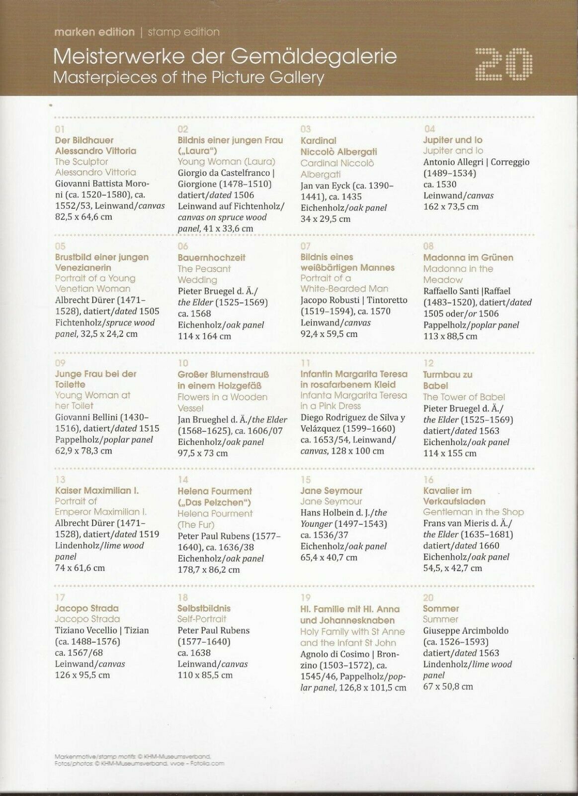2016 - Marken Edition 20 - Meisterwerke der Gemäldegalerie - Postfrisch **