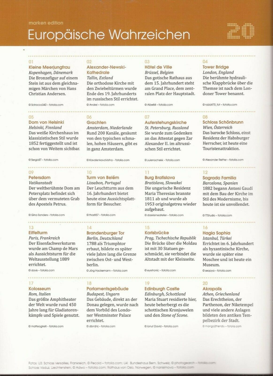 Mobile Preview: 2017 - Marken Edition 20 - Europäische Wahrzeichen - Postfrisch ** / DB / Kommissionsverkauf "BH"