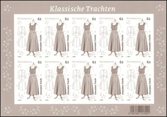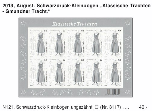 Schwarzdruck Gmundner Tracht. 10er Schwarzdruck Kleinbogen ungezähnt Best.-Nr.: SBM-28 Katalogwert: € 40,00 lt. ANK-Spezialkatalog 2020/21