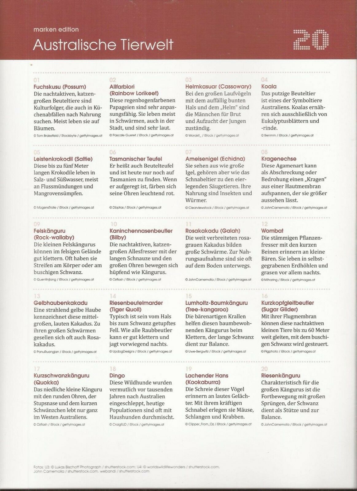 2018 - Marken Edition 20 - Australische Tierwelt - Postfrisch ** / DB / Kommissionsverkauf "BH"