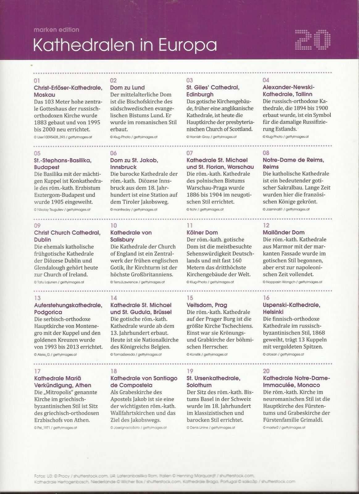 Mobile Preview: 2018 - Marken Edition 20 - Kathedralen in Europa - Postfrisch ** / DB / Kommissionsverkauf "BH"