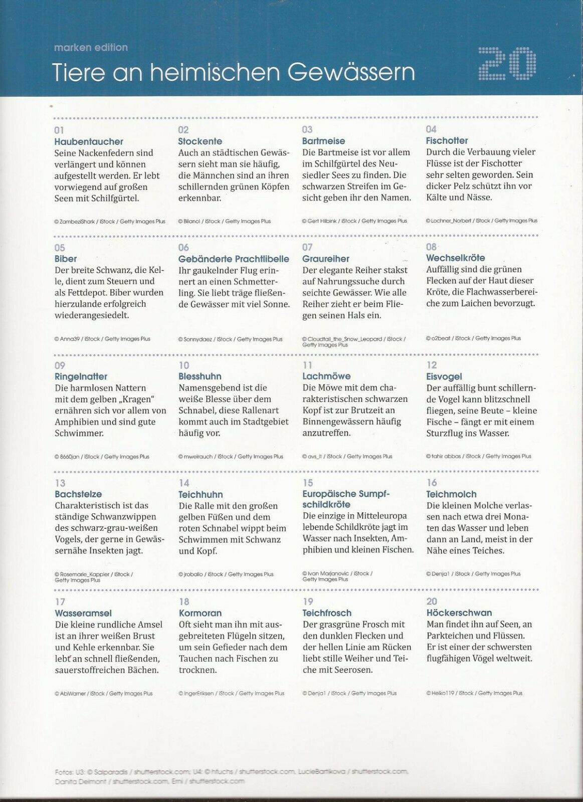 Mobile Preview: 2018 - Marken Edition 20 - Tiere an heimischen Gewässern - Postfrisch ** / DB / Kommissionsverkauf "BH"