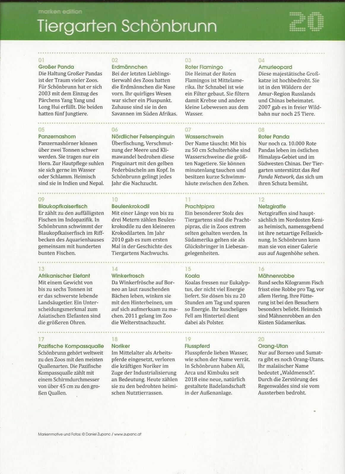 Mobile Preview: 2019 - Marken Edition 20 - Tiergarten Schönbrunn - Postfrisch ** / DB / Kommissionsverkauf "BH"