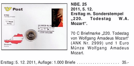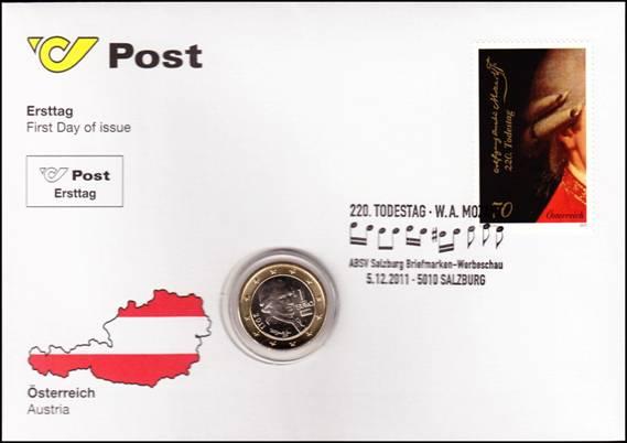 (ANK Nr. 2999) un 1 Euro Münze Wolfgang Amadeus Mozart