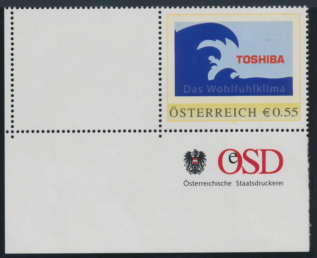8001457 - PM - Personalisierte Marke - TOSHIBA das Wohlfühlklima - Eckrandstück "OHNE" Bogennummer - Postfrisch ** / DB / Kommissionsverkauf "BH"