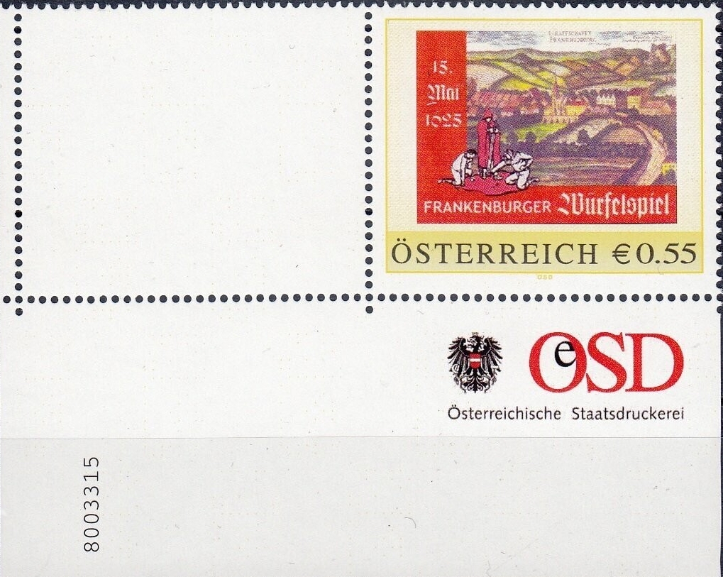 8003315 - PM - Personalisierte Marke - 15. Mai 1625 - Frankenburger Würfelspiel - Postfrisch ** / DB / Kommissionsverkauf "BH"