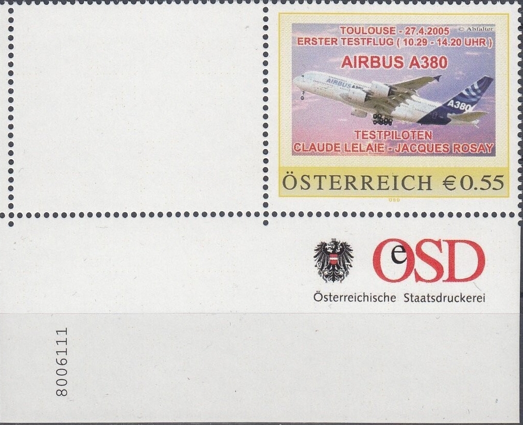 8006111 - PM - Personalisierte Marke - IRBUS A380 - erster Testflug - Postfrisch ** / DB / Kommissionsverkauf "BH"