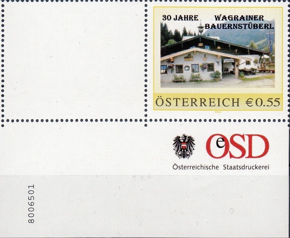 8006501 - PM - Personalisierte Marke - 30 Jahre Wagrainer Bauernstüberl - Postfrisch ** / DB / Kommissionsverkauf "BH"