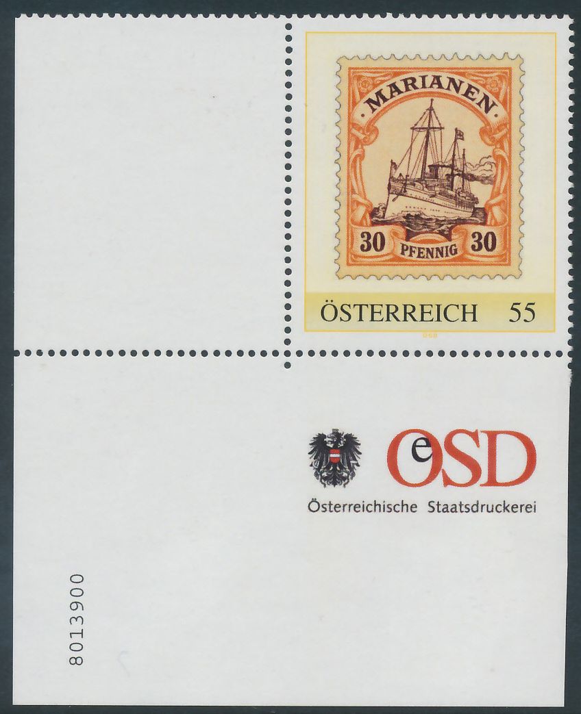 8013900 - PM - Personalisierte Marke - Schiff - Marke auf Marke - 30 Pfennig - Marianen - Postfrisch ** / DB / Kommissionsverkauf "BH"