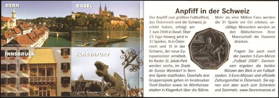 Münzfolder Fussball 2008 "Anpfiff in der Schweiz" mit 5.- Euro Silbermünze "Stürmer"