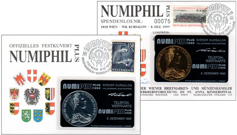 Numiphil 1995 Spendenlose 2 Stück mit 20 E u. 50 E Telefonkarten