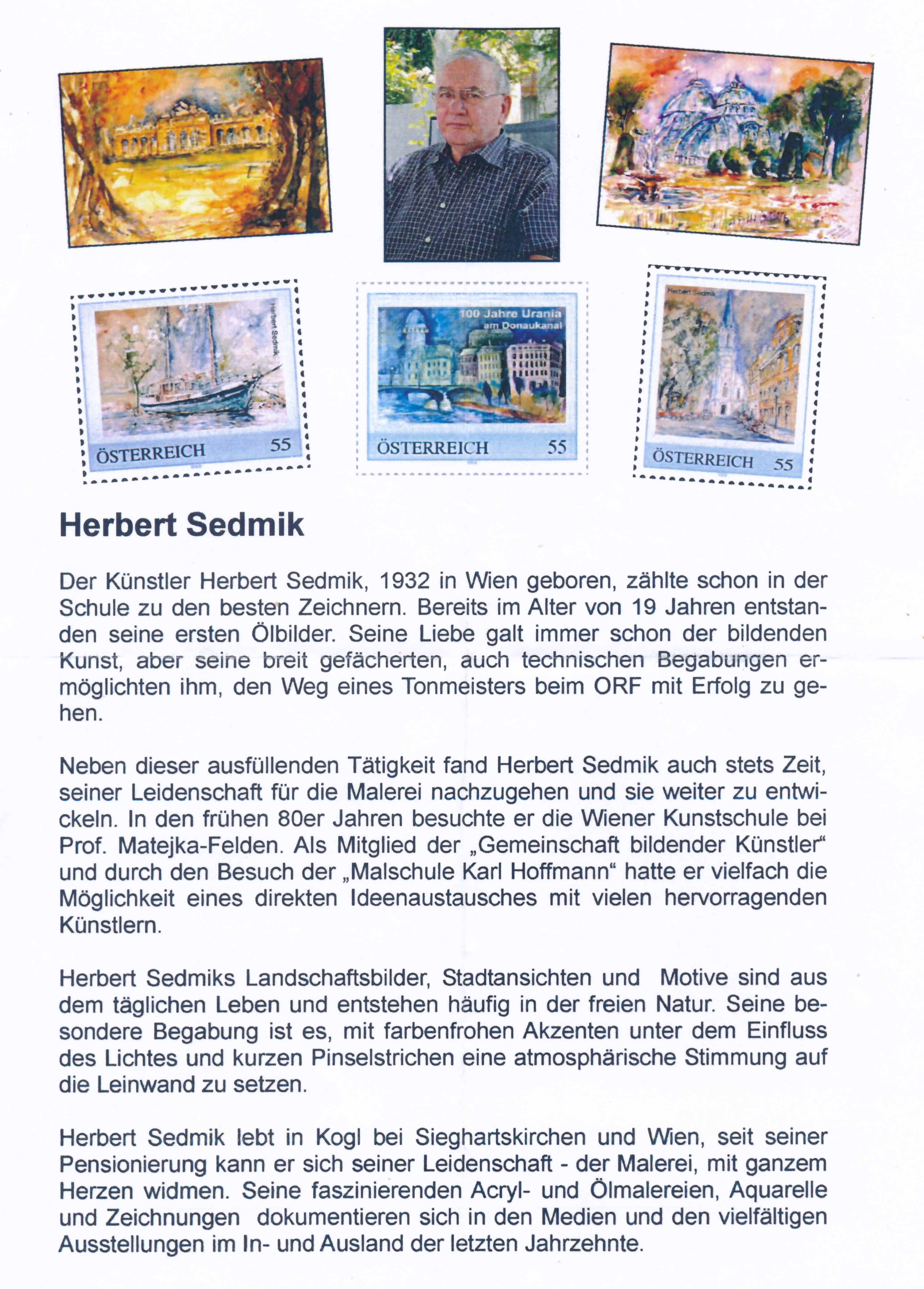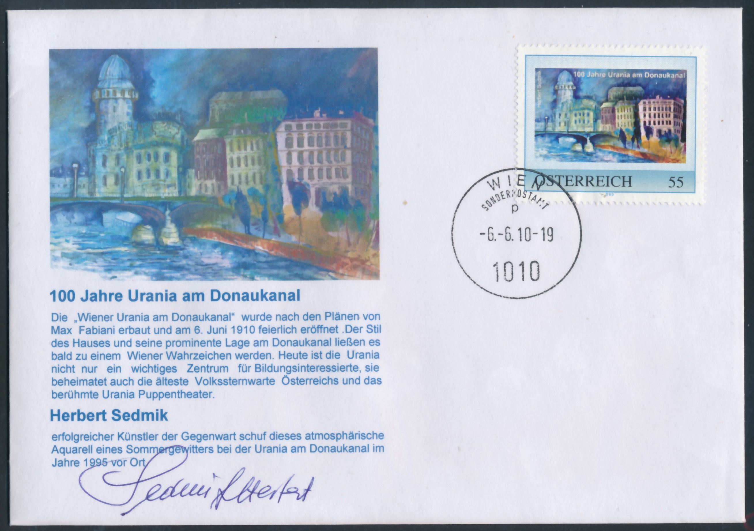 PM - Ganzsache mit Personalisierte Marke - 100 Jahr Urania am Donaukanal - Herbert Sedmik - mit Unterschrift / DB / Kommissionsverkauf "BH"