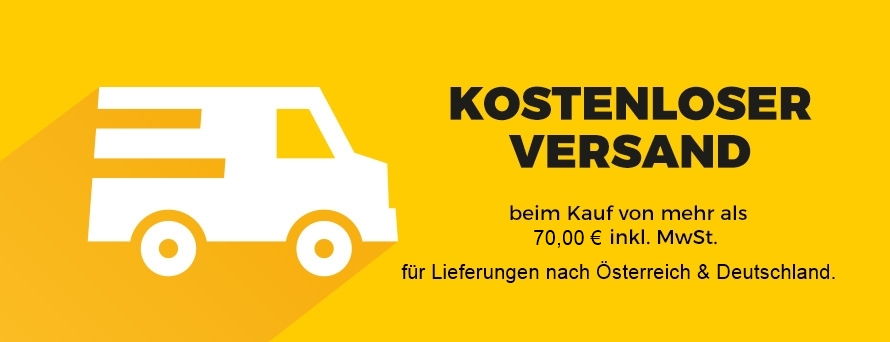 Der Versand für Deutschland und Österreich ist ab einem Bestellwert von 70,- € inkl. MwSt. versandkostenfrei.
