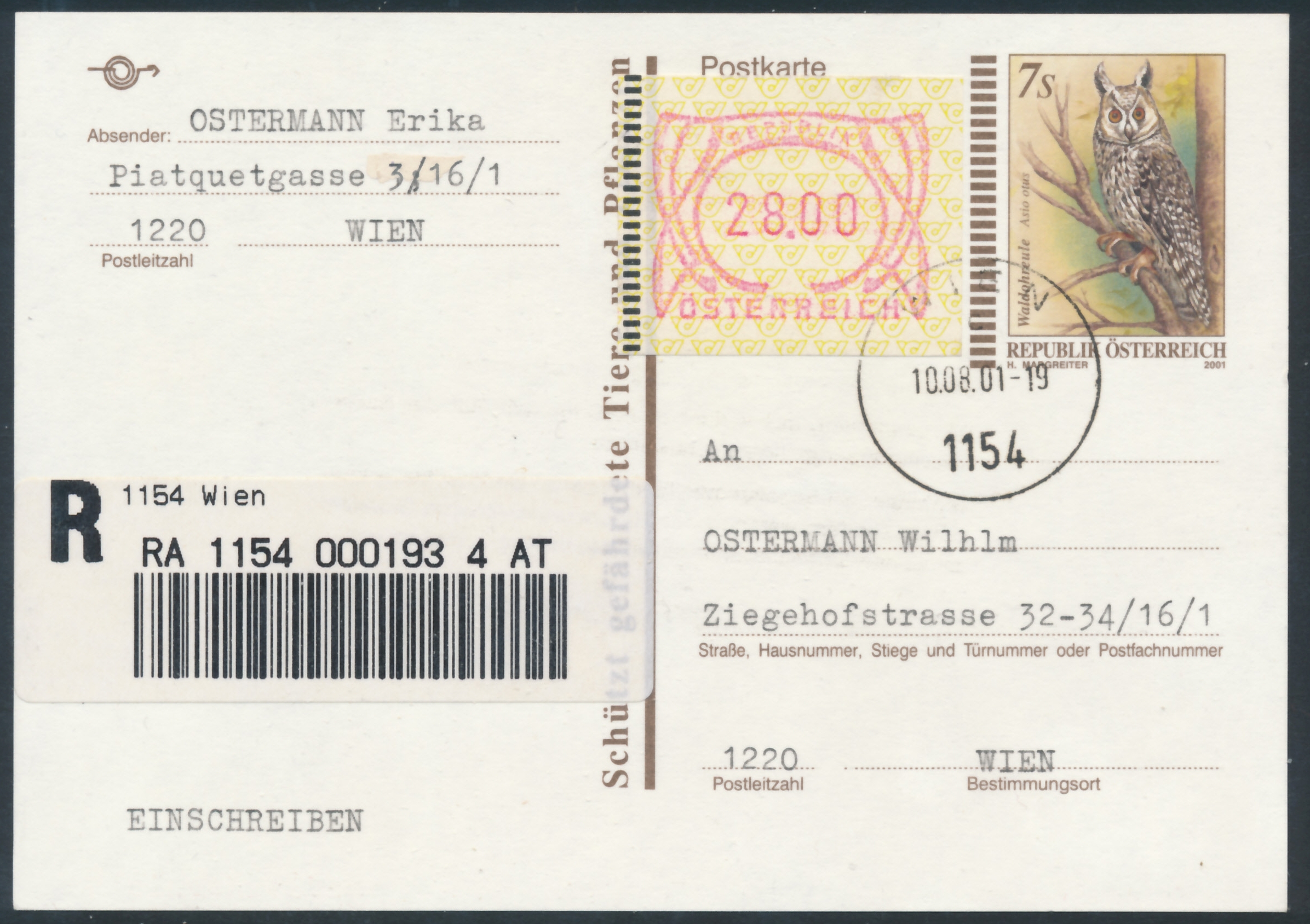 Ganzsache mit Schilling - Automatenmarke