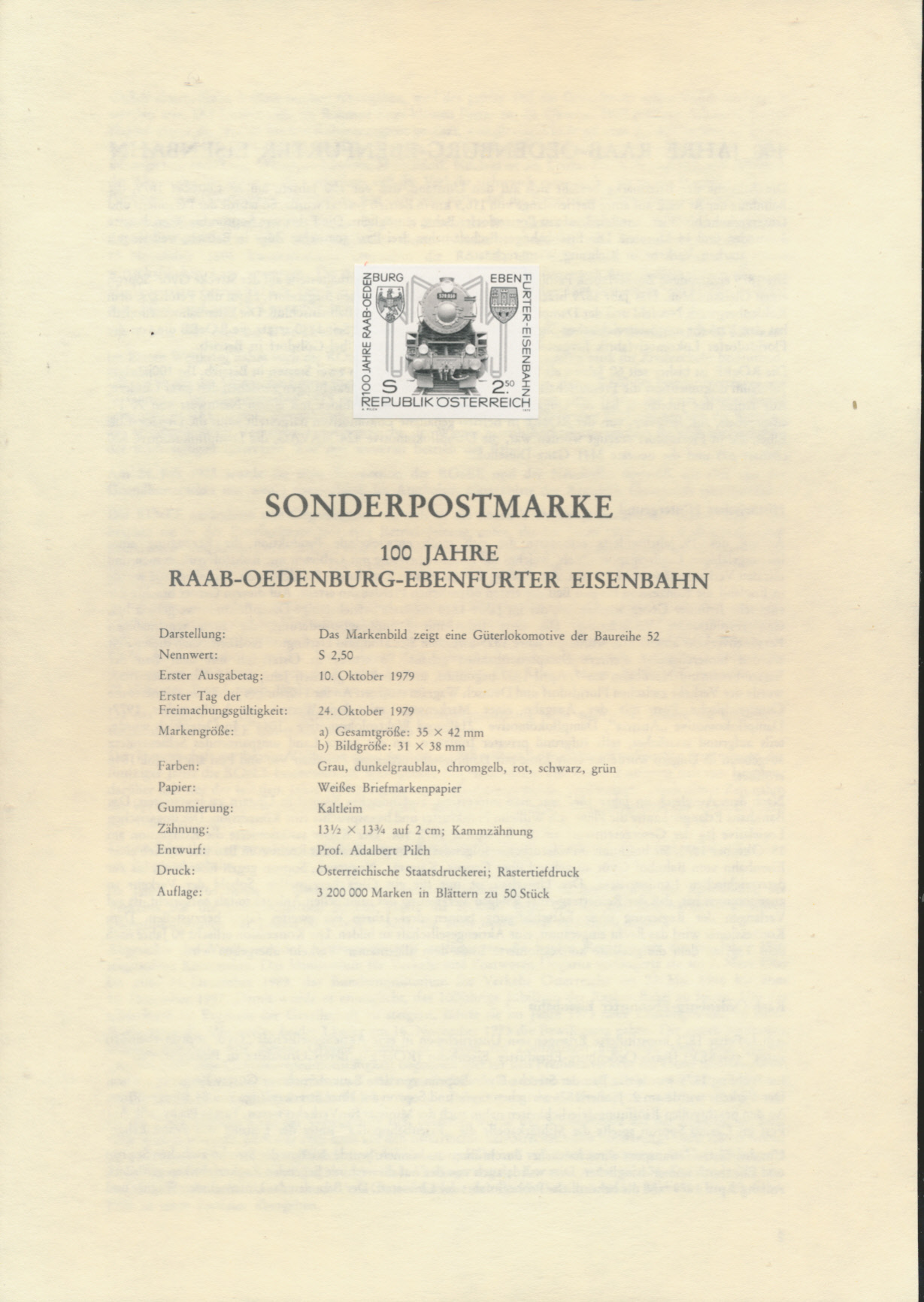 SD - Schwarzdruck - auf Erläuterungsblatt - 1979 / DB / Kommissionsverkauf "BH" 29