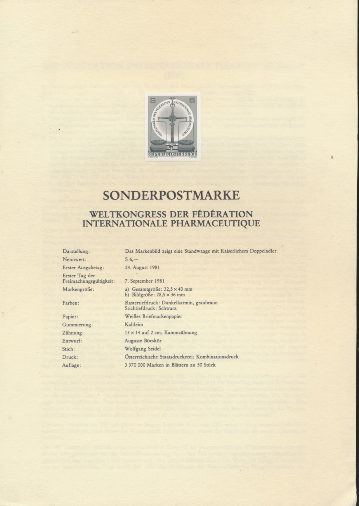 SD - Schwarzdruck - auf Erläuterungsblatt - 1981 / DB / Kommissionsverkauf "BH" 14