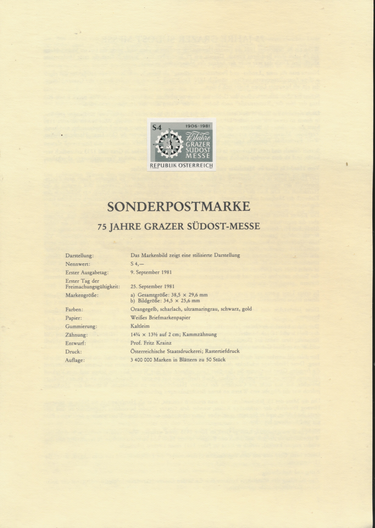 SD - Schwarzdruck - auf Erläuterungsblatt - 1981 / DB / Kommissionsverkauf "BH" 18